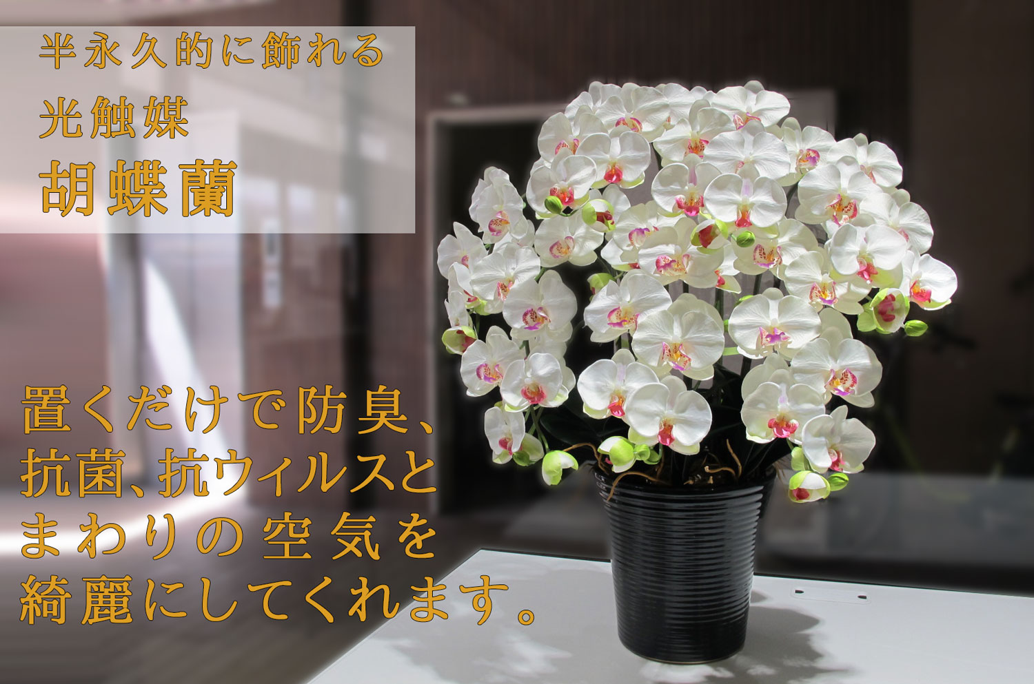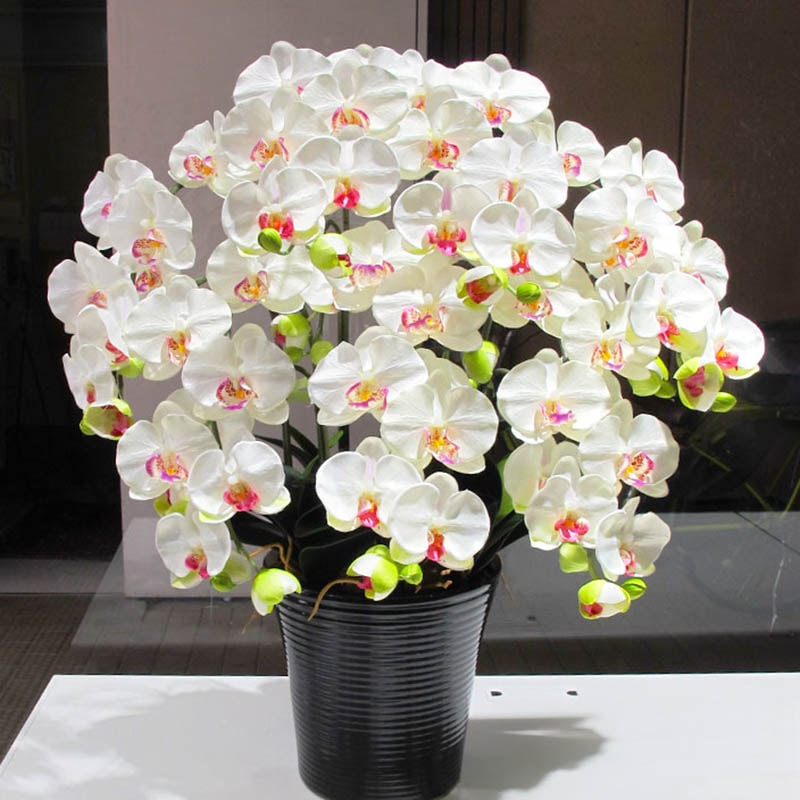 光触媒 造花 胡蝶蘭(7本立て) 陶器の化粧鉢に入れてお届け。
