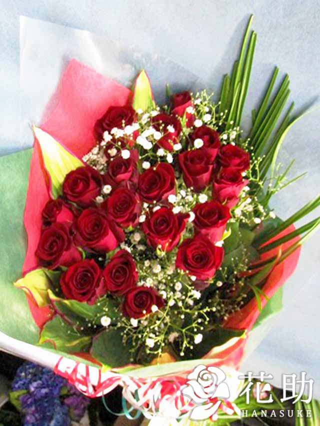 フラワーコンシェルジュが厳選した花屋の赤バラ×カスミソウ 王道花束 15,000円