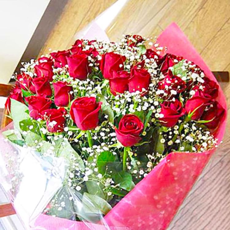 フラワーコンシェルジュが厳選した花屋の赤バラ×カスミソウ 王道花束 20,000円