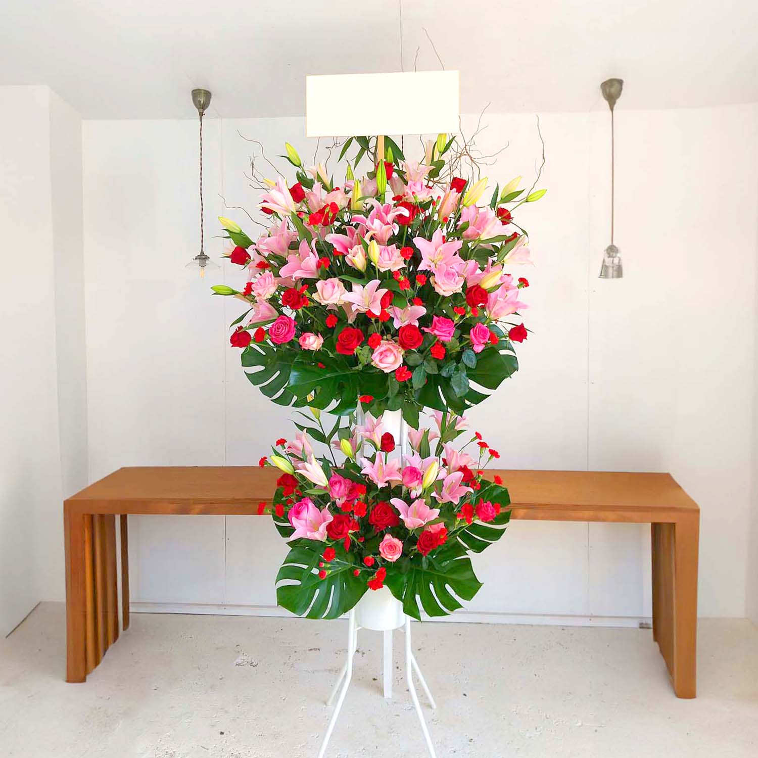 全国の厳選された優良な生花店からスタンド花をお届け、設置致します。 スタンド台は、後日無料で回収に伺います。
