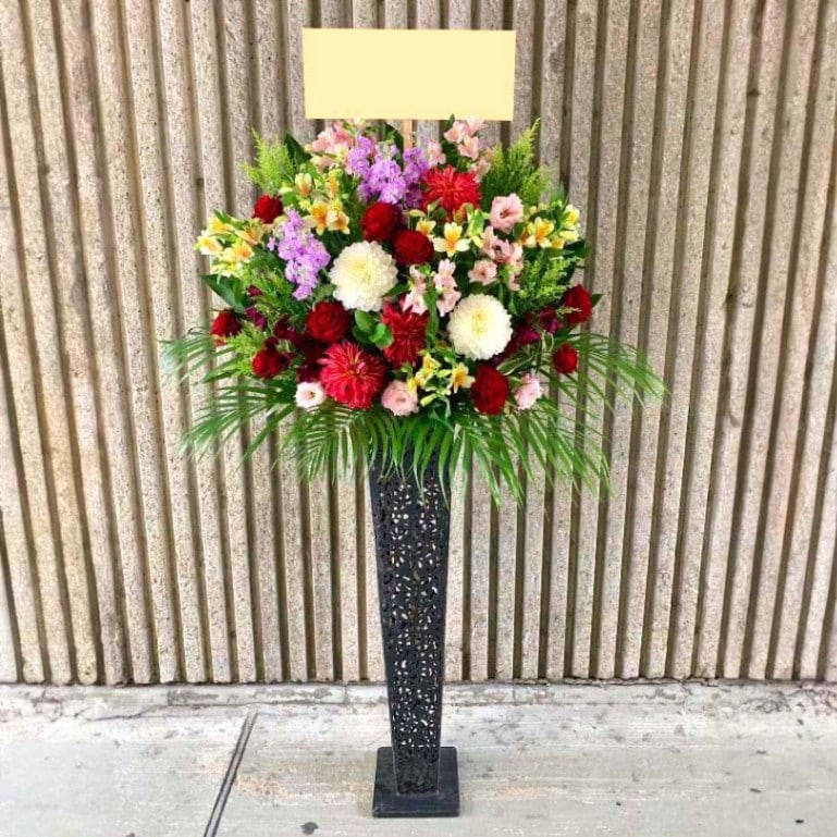 | お届け内容 | 全国の厳選された優良な生花店からスタンド花をお届け、設置致します。 スタンド台は、後日無料で回収に伺います。 |