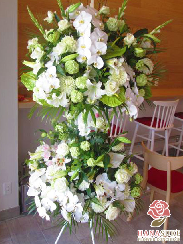 | お届け内容 | 全国の厳選された優良な生花店からスタンド花をお届け、設置致します。 スタンド台は、後日無料で回収に伺います。 |