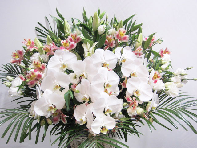 お花が大好きな祖母へのお供えとして、最高のものを作って頂きました。胡蝶蘭やユリがつつか